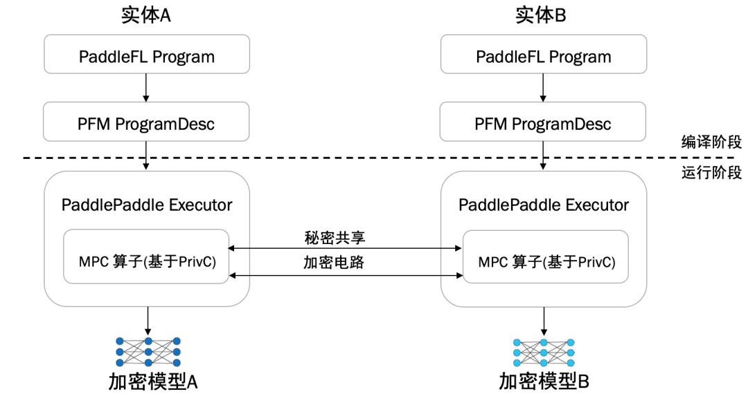 ▲ 图 1 PaddleFL with PrivC 运行示意图