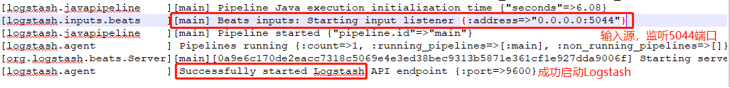 怎么判断启动成功呢,看Logstash应用的/logs目录下的logstash-plain.log日志文件: