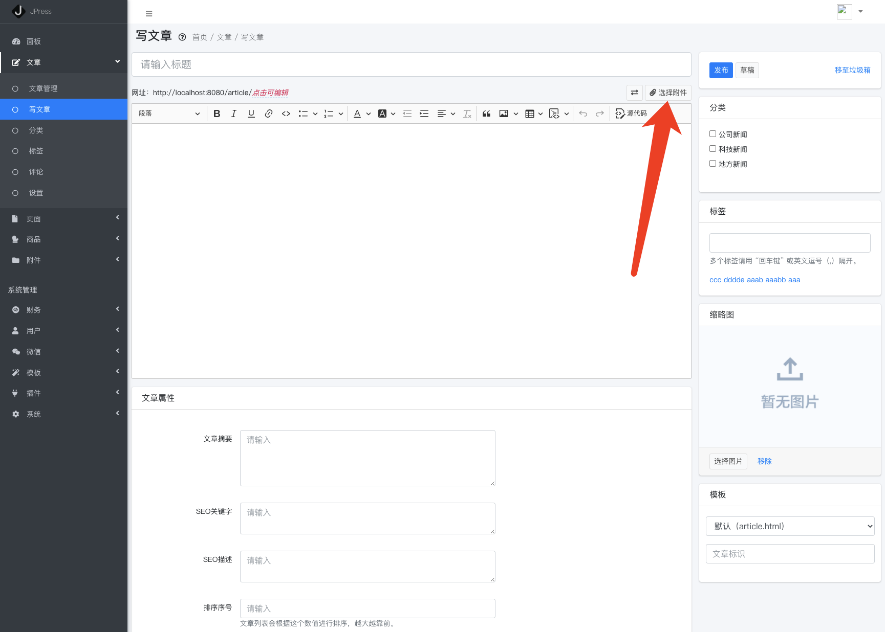 - 新增:文章、页面、产品编辑器新增选择附件的功能,可以直接插入附件、图片和视频
