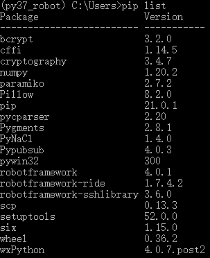 经过验证python 3.7.9可以安装并运行Robot Framework框架的版本如下所示: