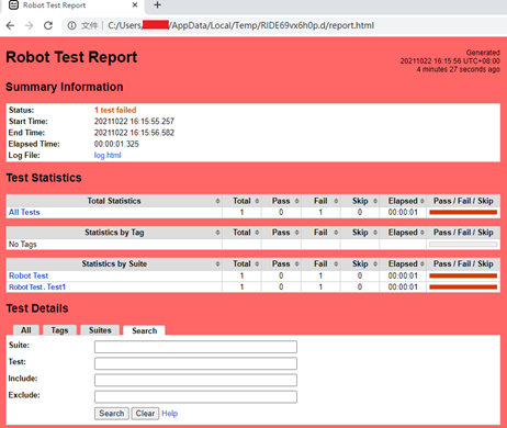 打开浏览器,在地址栏中输入上述“Report”的存储路径,可以查看到当前测试所执行的结果和状态。