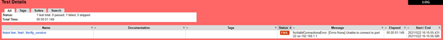 如图中所示,测试过程中在第一步发起SSH连接的时候就出错,错误信息显示SSH连接失败。此时需要检查测试机和被测设备之前的网络通路。 在执行完成之后,参考出错用例的下一个用例,进行配置的修改。在测试用例的规划上,建议采用一条配置和一条执行的方式,如下图所示。