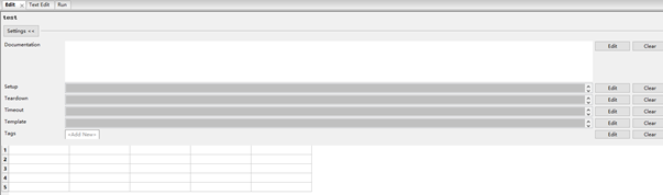 测试用例创建完成后,会在右侧的“Edit”标签下,显示一个带有如同Excel表格的空白界面,如下图所示: