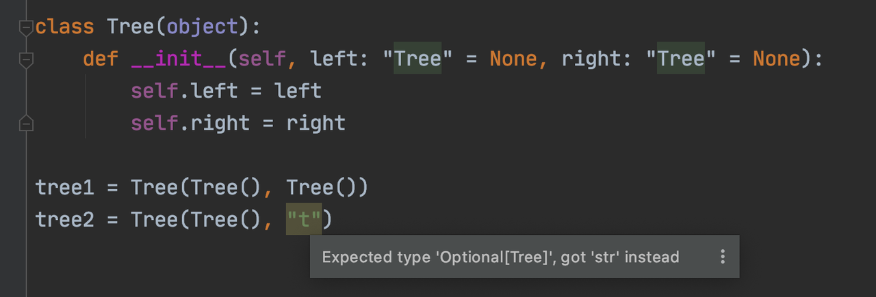 当类型标注为自定义类型时,IDE 也能够对类型进行检查。
