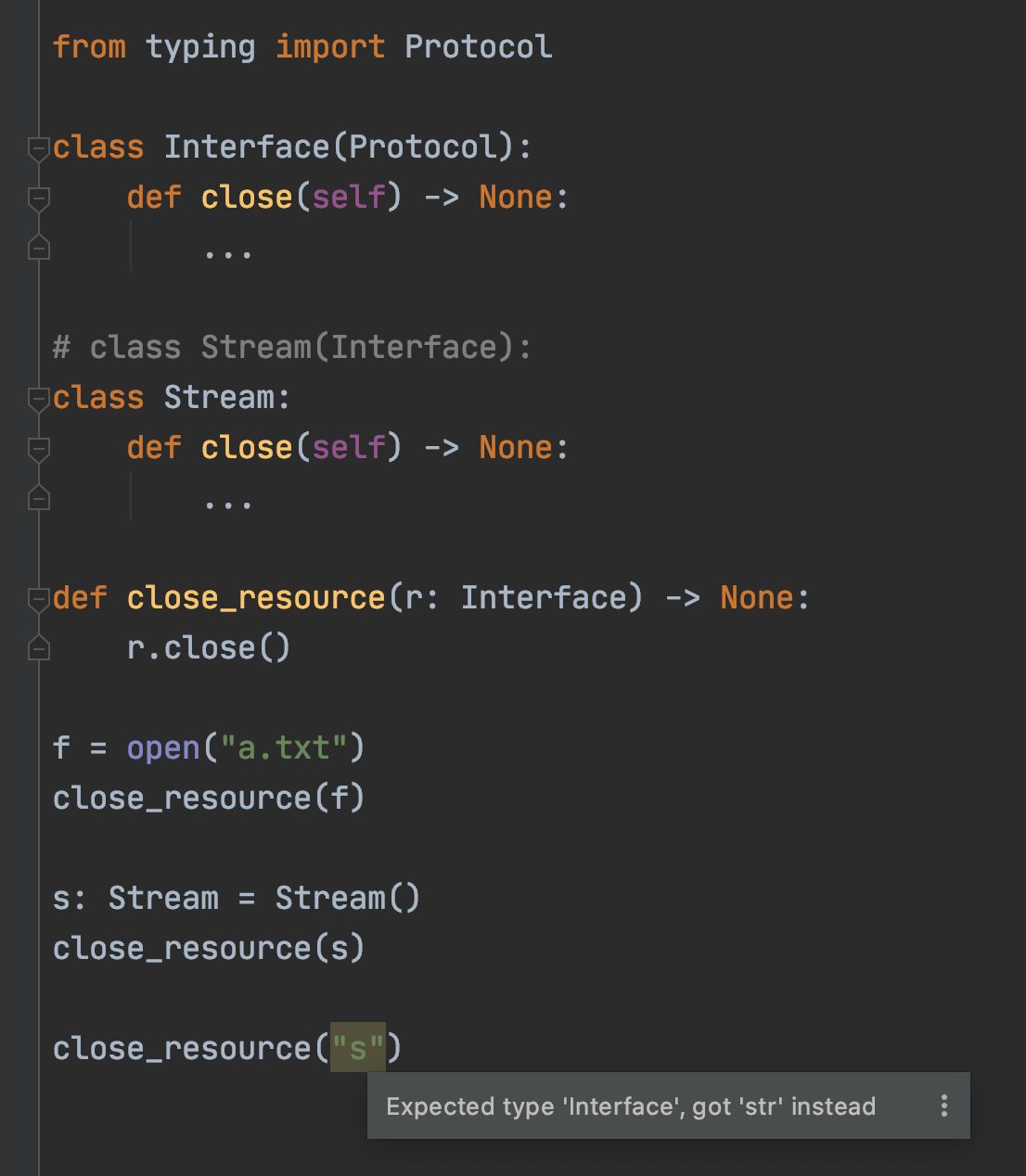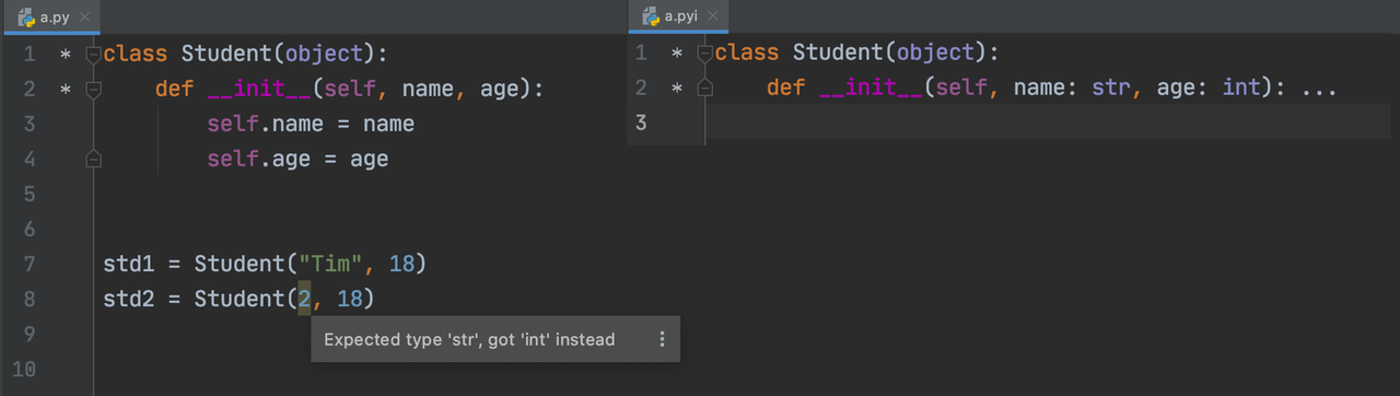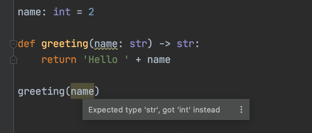 Type Hints 之所以叫 Hints 而不是 Check,就是因为它只是一个类型的提示而非真正的检查。上面演示的 Type Hints 用法,实际上都是 IDE 在帮我们完成类型检查的功能,但实际上,IDE 的类型检查并不能决定代码执行期间是否报错,仅能在静态期做到语法检查提示的功能。