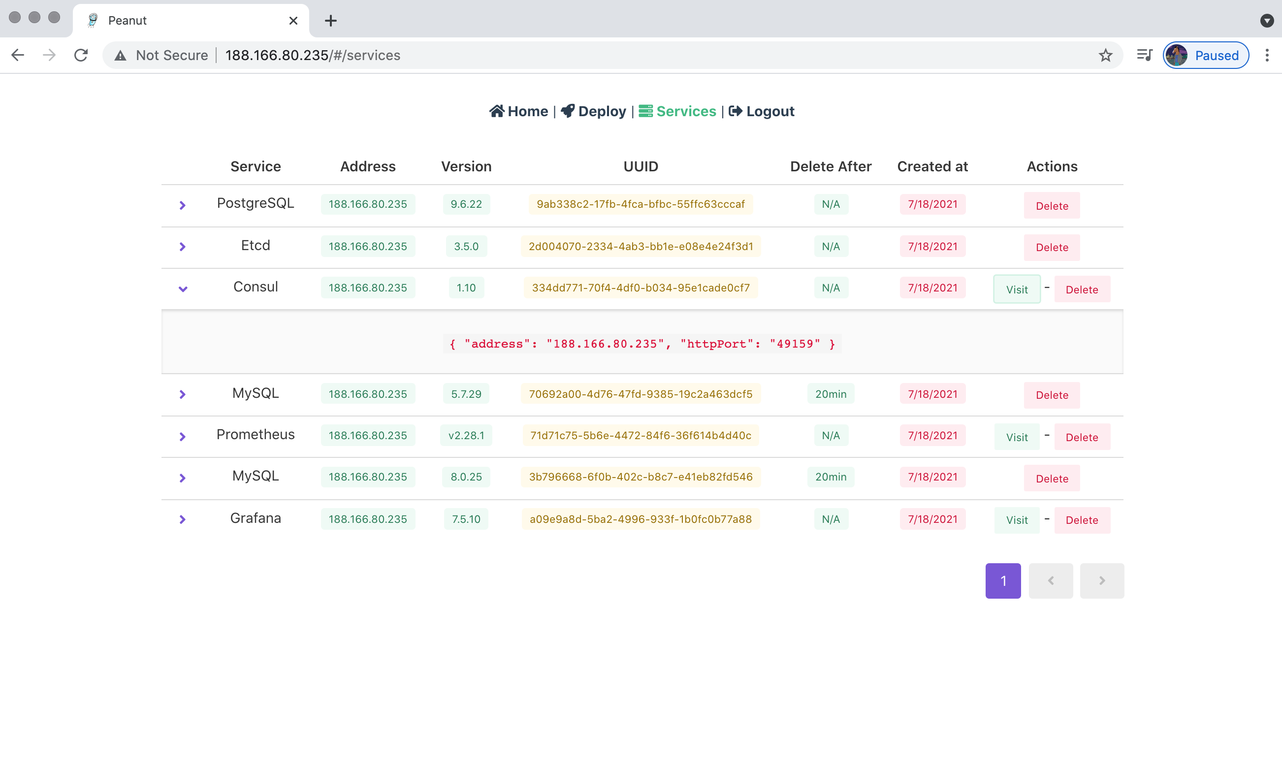 Peanut 提供了可视化仪表盘、REST API 和命令行工具来部署和配置常用的服务,比如数据库、消息代理、缓存工具等等,适用于开发、手动测试、自动测试等场景。理论上你也可以通过一堆 YAML 文件或者 Helm 这样的包管理工具来实现同样的目的,但 Peanut 更加轻量,也比较好玩,比较适合用来临时测试,可以加快工作流程。