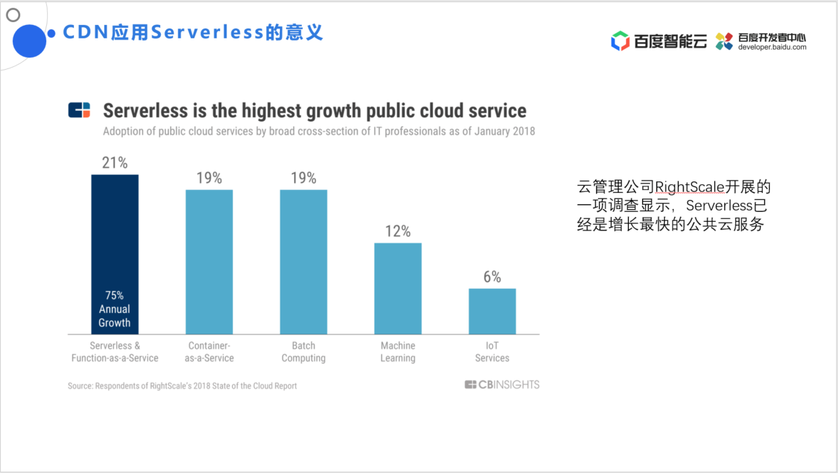 早在 2018年,云管理公司 RightScale 开展的一项调查显示,Serverless 是增长最快的公共云服务。