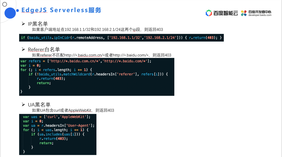 EdgeJS 支持通过百度自有的库提供一些常用的访问控制功能: