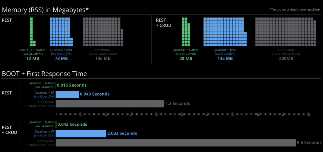 Quarkus的开发遵从了容器优先的原则,这意味着它已通过以下方式针对降低内存使用和加快启动时间进行了优化