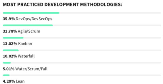 近年,“DevSecOps”越来越火。GitLab 2021年度全球DevSecOps年度调查显示,35.9%的组织或公司选择 DevOps 或者DevSecOps 作为开发实践方法论,超过敏捷,高居第一。