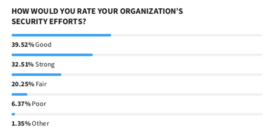 在GitLab 2021年度全球DevSecOps年度调查中,72%的调查者认为组织在安全方面的投入达到了“良好(good)”和“非常重视(strong)”的程度。而这一数字仅在一年前,还是59%。