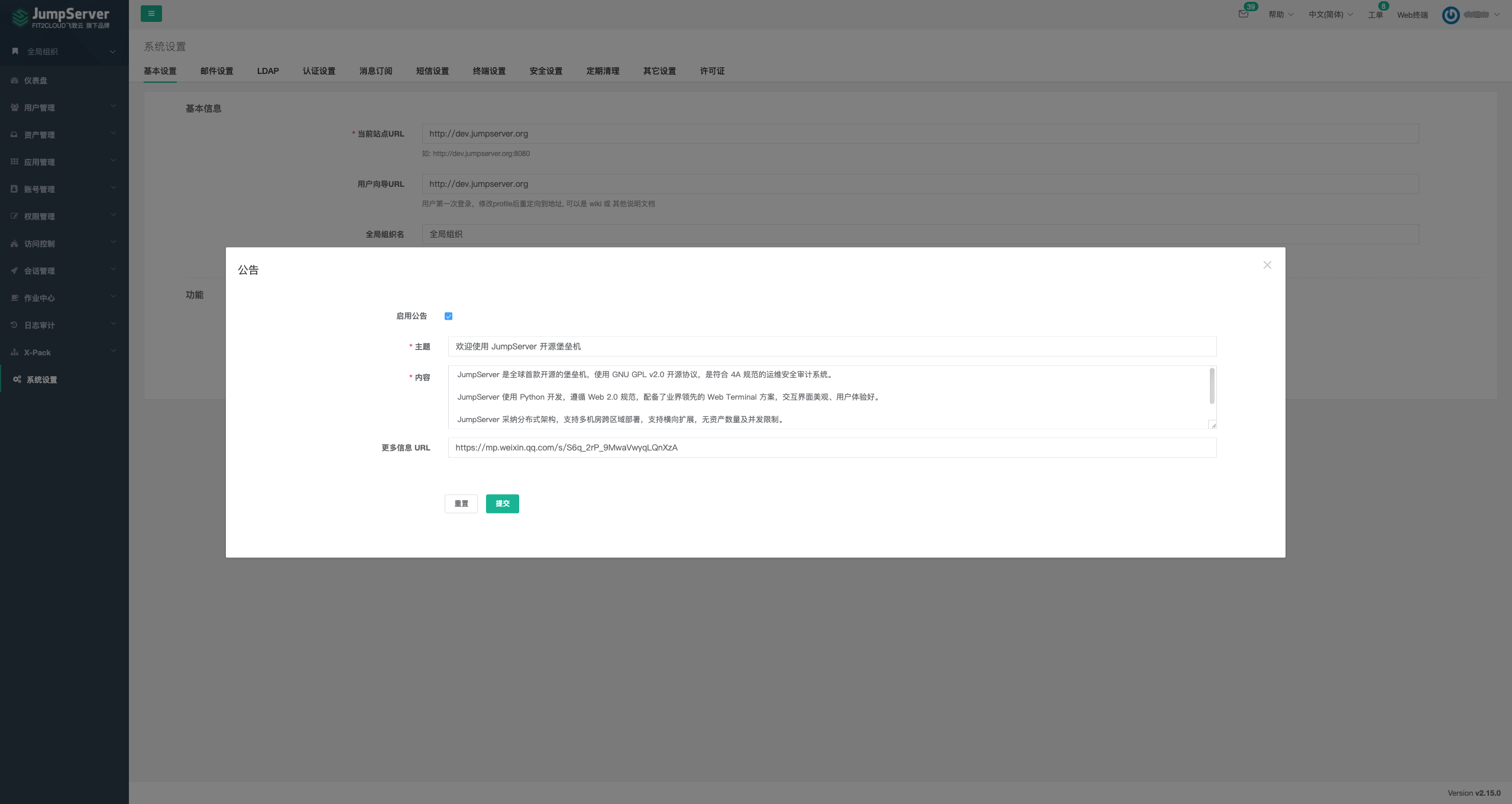JumpServer 堡垒机 v2.15.0 发布,新增公告提示功能,支持用户异地登录提醒和授权过期通知
