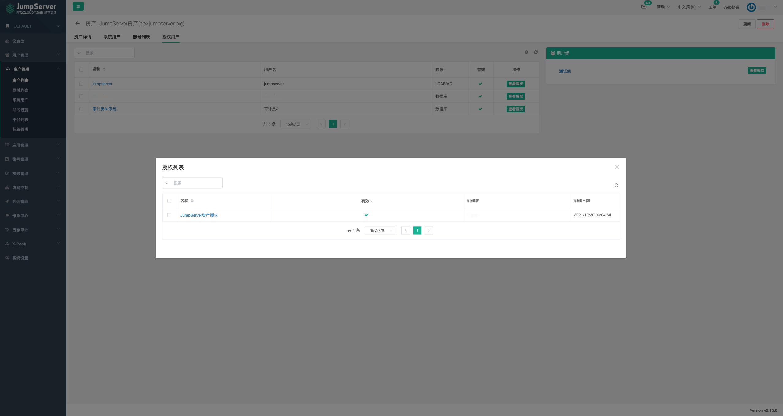 4. “资产详情”页面支持查看已授权的用户和用户组