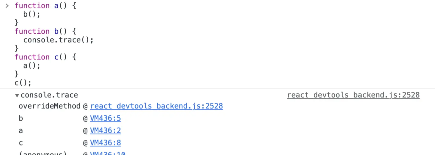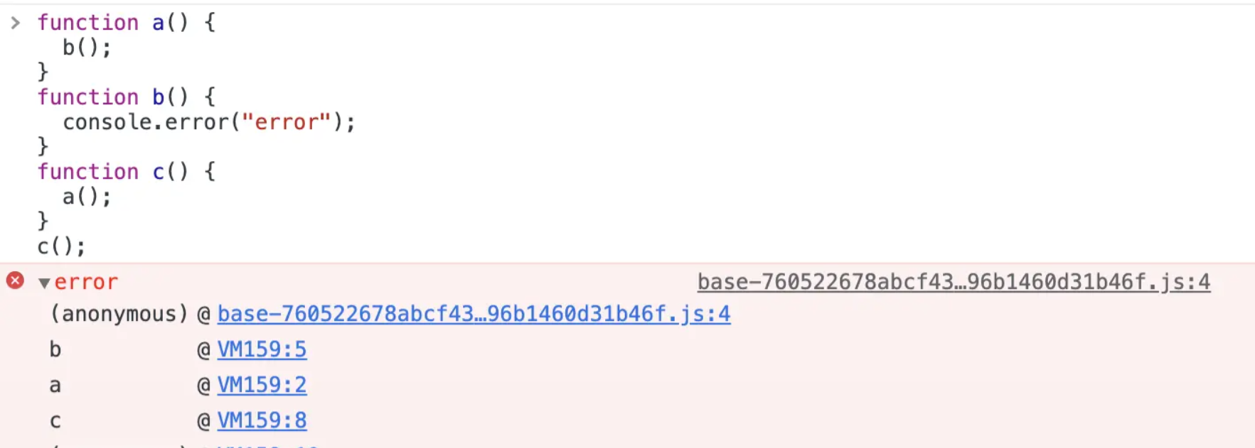 可以看到,这里输出了调用栈的信息:b→a→c,这个堆栈信息是从调用位置开始的。