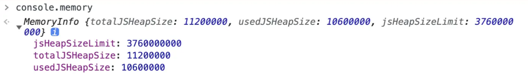 console.memory是console对象的一个属性,而不是一个方法。它可以用来查看当前内存的使用情况,如果使用过多的console.log()会占用较多的内存,导致浏览器出现卡顿情况。