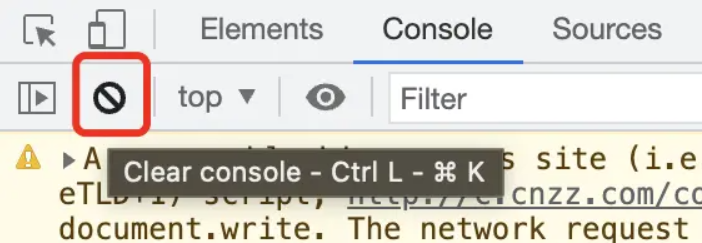console.warn() 方法用于在控制台输出警告信息。它的用法和console.log是完全一样的,只是显示的样式不太一样,信息最前面加一个黄色三角,表示警告: