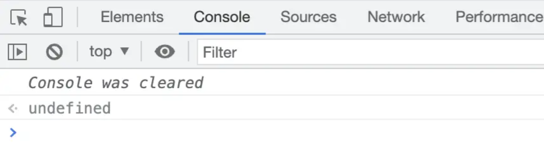 console.clear() 顾名思义就是清除控制台的信息。当清空控制台之后,会打印一句:“Console was clered”: