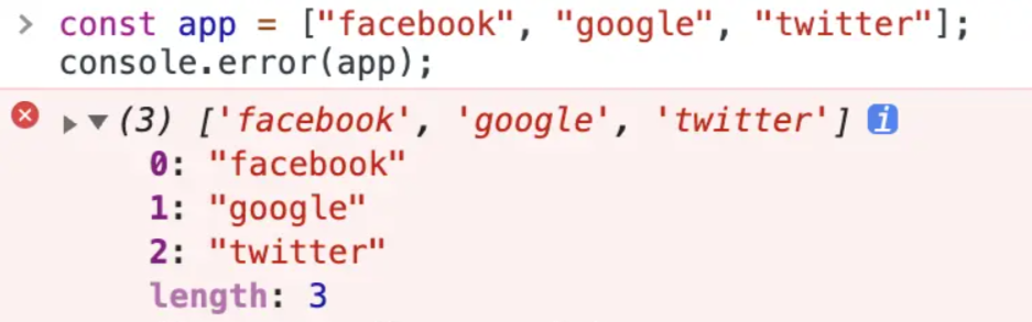 console.error()可以用于在控制台输出错误信息。它和上面的两个方法的用法是一样的,只是显示样式不一样: