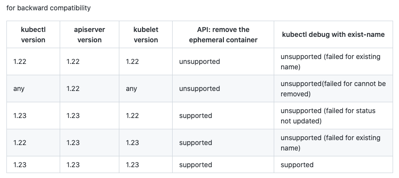注意:使用 kubectl debug 调试,并不能为 pod 自动加上 SYS_PTRACE 安全特性,这就意味着如果容器使用的 UID 不一致,就无法访问进程空间。 截止发文,计划在 1.23 中支持。