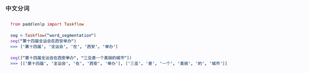 目前,Taskflow API 支持自然语言理解(NLU)和生成(NLG)两大场景共八大任务,包括中文分词、词性标注、命名实体识别、句法分析、文本纠错、情感分析、生成式问答和智能写诗,均可一键调用。