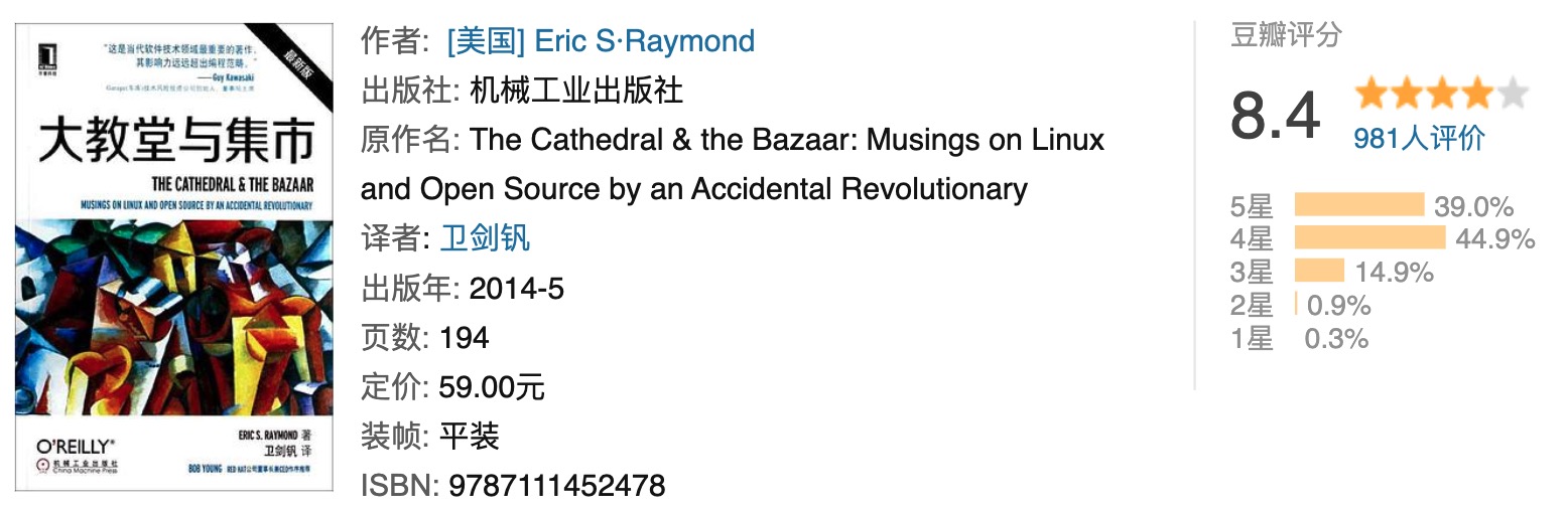 这里推荐一本书《大教堂与集市》,这本书讲了传统软件开发和开源软件开发在项目管理上的不同之处。