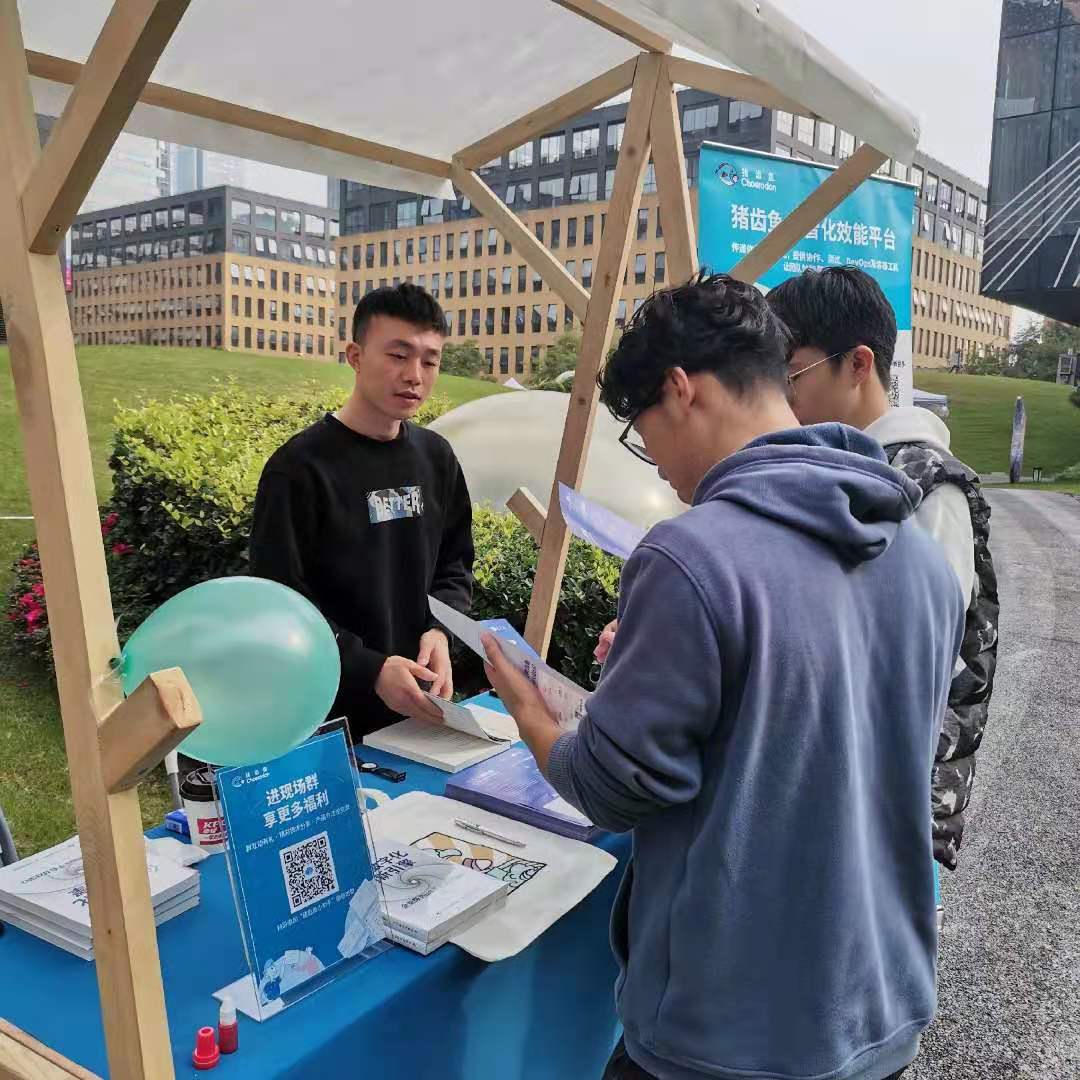 在本次年会的成都分会场,猪齿鱼设置了交流展位,与到场的开发者进行积极互动。汉得信息的架构师易大强和钟梓凌先生就用户关心的猪齿鱼技术实践、效能提升案例、未来发展路线等问题一一解答,并就DevOps、项目管理等技术问题和与会技术爱好者进行交流,碰撞思想和技术的火花。猪齿鱼领先的技术应用和强大的产品功能得到了与会开发者的认可,精美周边也受到大家的喜爱。