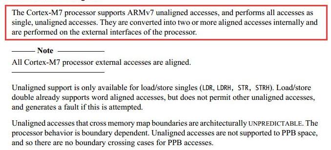 M7内核也支持非对齐访问,在M7的TRM中描述如下: