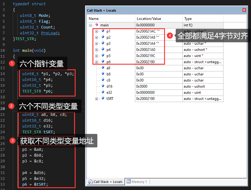 uint32_t定义变量地址要4字节对齐。