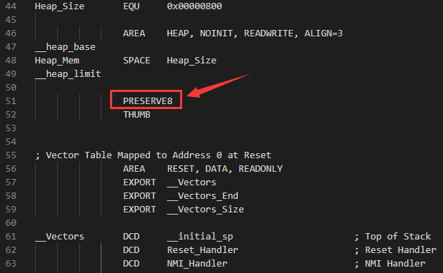 而汇编文件是需要用户去处理的。以xxx.S启动文件为例,通过伪指令PRESERVE8来保证