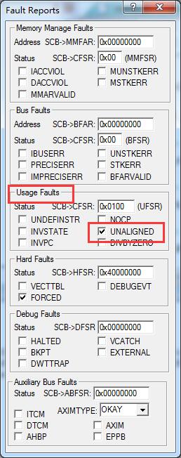 如果使用的是带FPU硬件浮点单元的M内核芯片就要注意对齐访问了,访问单精度浮点数访问一定要4字节对齐,双精度要8字节对齐。