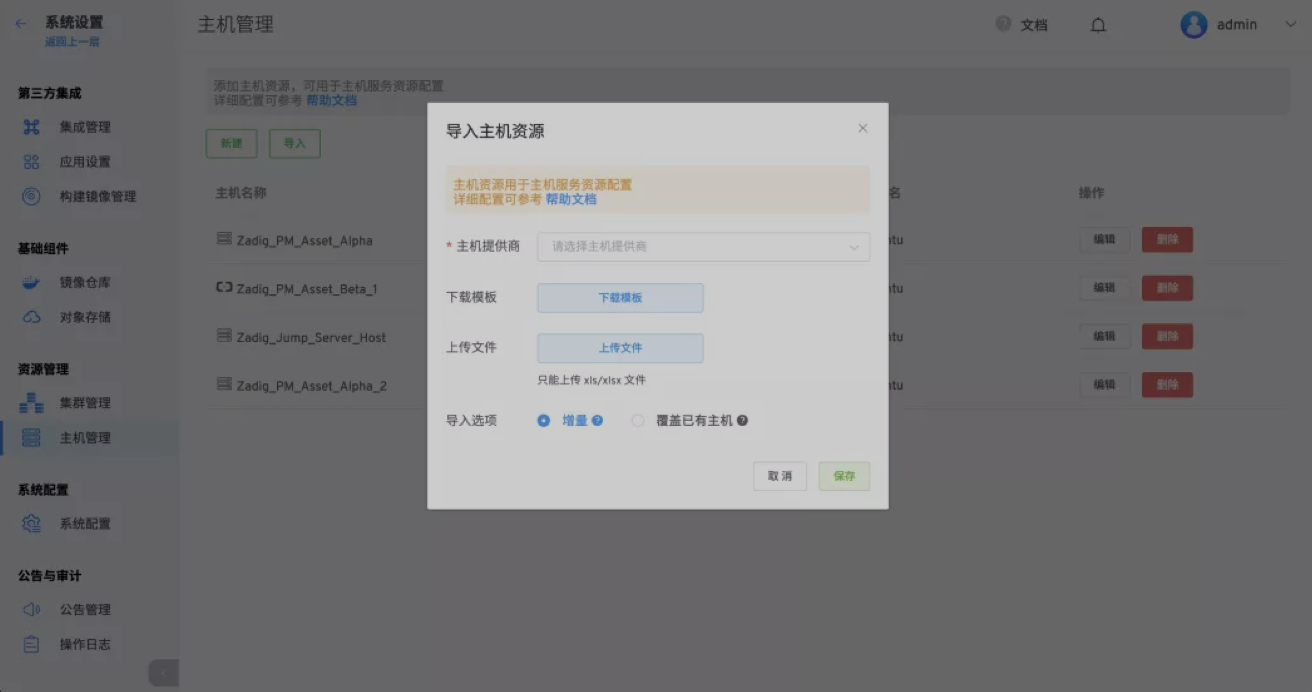 支持批量导入主机列表并分组管理,在自动化部署环节可以批量部署,同时支持主机模式的交付物部署