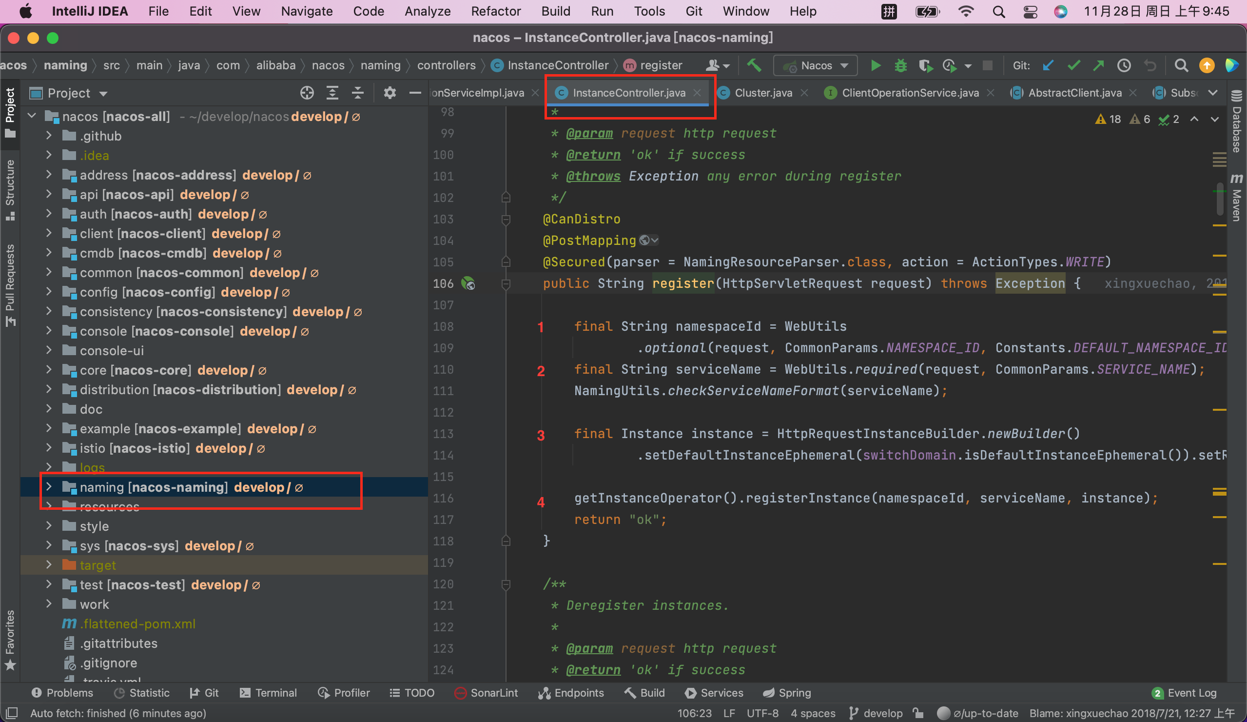 - naming:命名、给...起名字,所以应该是和服务发现有关系的,到这个模块里看看,发现存在一个InstanceController.java的文件,如下图
