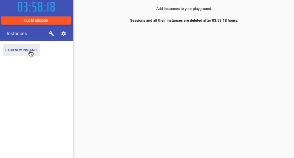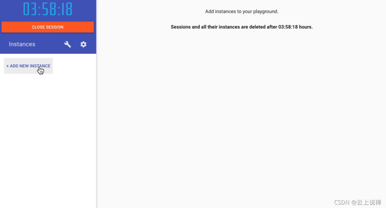 进入页面后,你将看到虚拟出来的一个session(会话)。在左侧点击“添加实例(Add New Instance)”:
