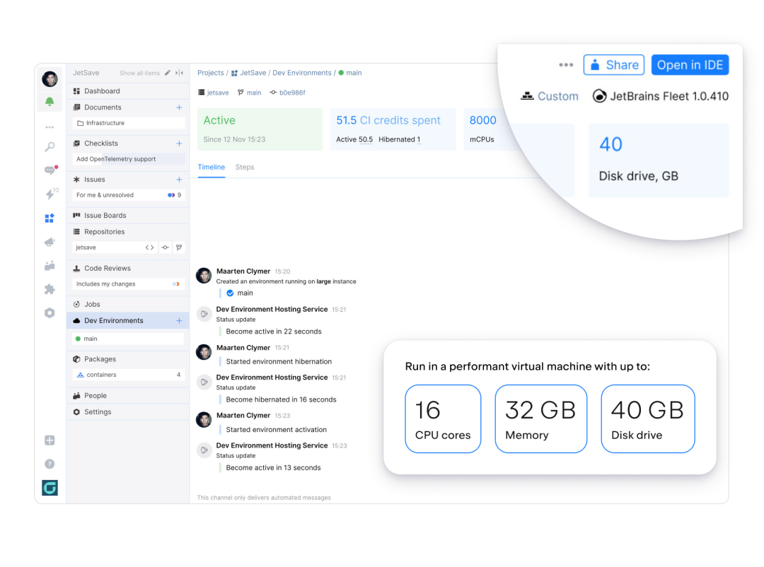 我们都感受到过处理一个新项目时需要设置环境的痛苦。要确保我们有正确的设置、正确的依赖项和其他需要开始工作的一切的确不容易。 JetBrains Space 添加了编排支持,可从源仓库轻松启动远程服务器实例,支持使用 Dockerfile 进行自定义。