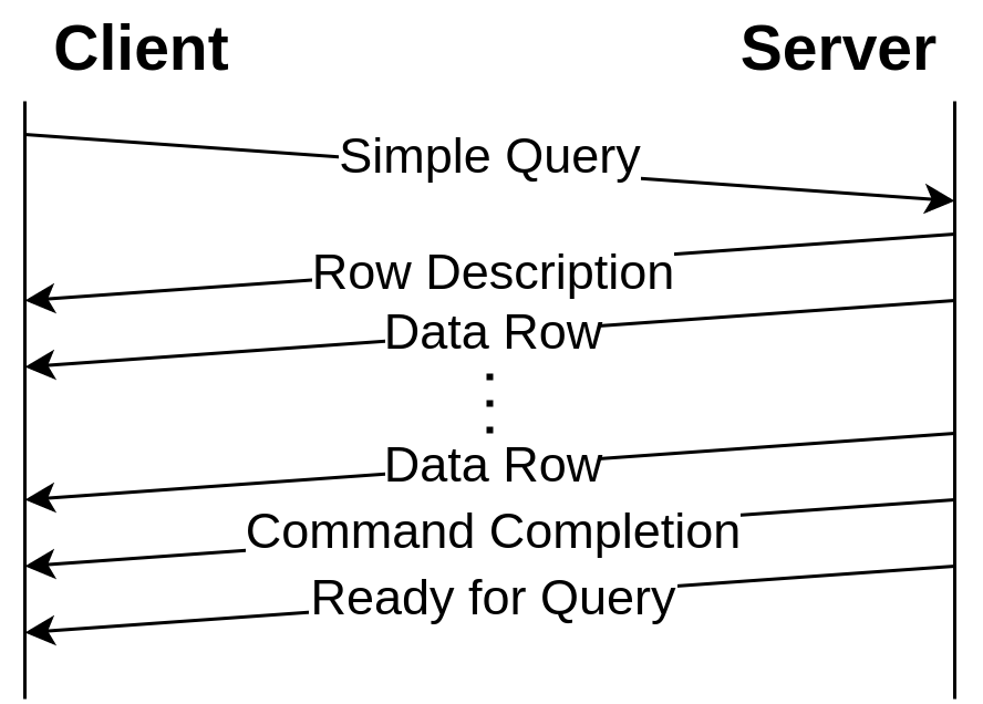 比如,使用如下命令行工具 psql 连接 PostgreSQL 数据库进行 CRUD 操作时,主要使用 Simple Query 协议与数据库交互。