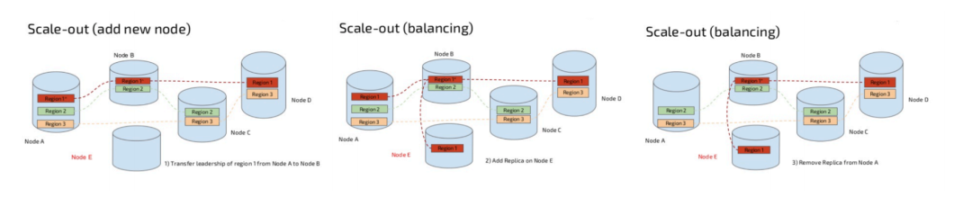 TiKV 扩容操作仅需要在新增服务器上合理配置并启动服务即可, 新启动的 TiKV 服务会⾃动注册到现有集群的 PD 中, PD 会⾃动做在线的逐步负载均衡, 对业务⽆感知地, 逐步地把⼀部分数据迁移到新的 TiKV 服务中。⽽新投入的 TiKV 资源可以认为在启动的⼀瞬间就已经将资源添加到了现有集群, 不需要再等待漫⻓的, 外部控制的数据重分布过程。