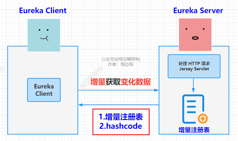 如下图所示,获取增量注册表的接口,会返回增量注册表和 hashcode。