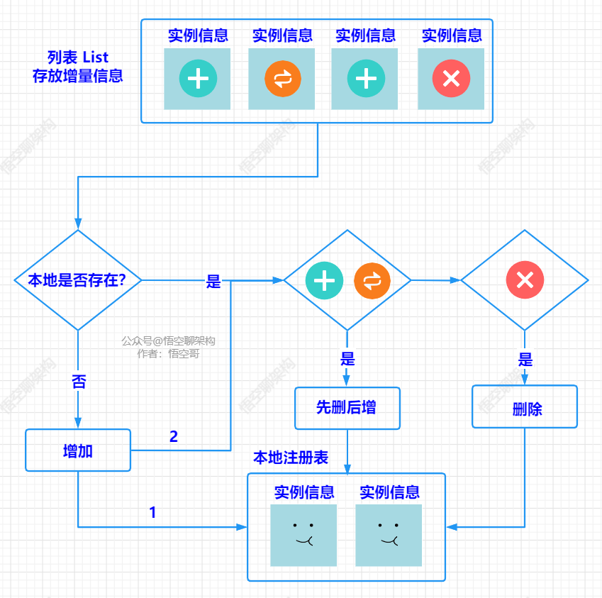 操作类型:当有客户端发起注册、更新注册表、下线时,会设置 actionType,对应三种枚举值:新增、更新、删除。