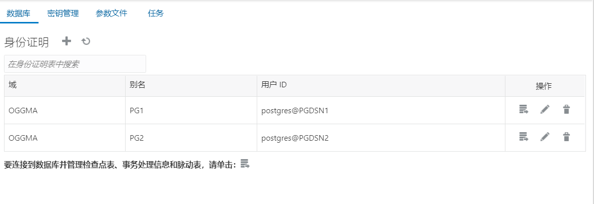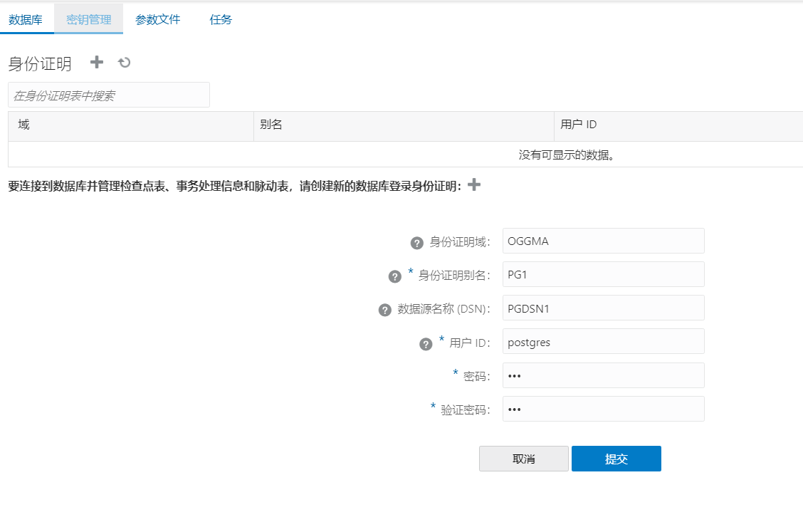 若是报错:OGG-15409 Alias ‘PG1’ not found in credential store domain ‘OracleGoldenGate’.
