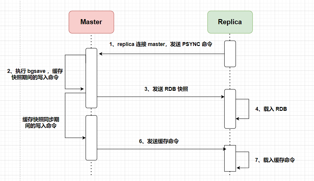 - replica 加载完成后,通知 master 发送所有缓冲的命令给 replica,这个过程以指令流的形式完成并且和 Redis 协议本身的格式相同;