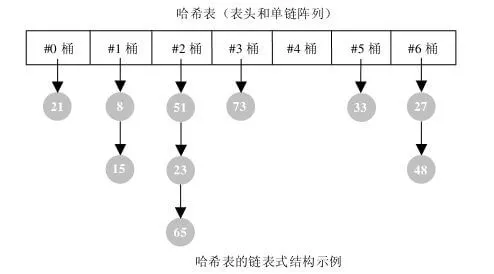 链地址法,简单来说,就是数组加链表的结合,如下图所示: