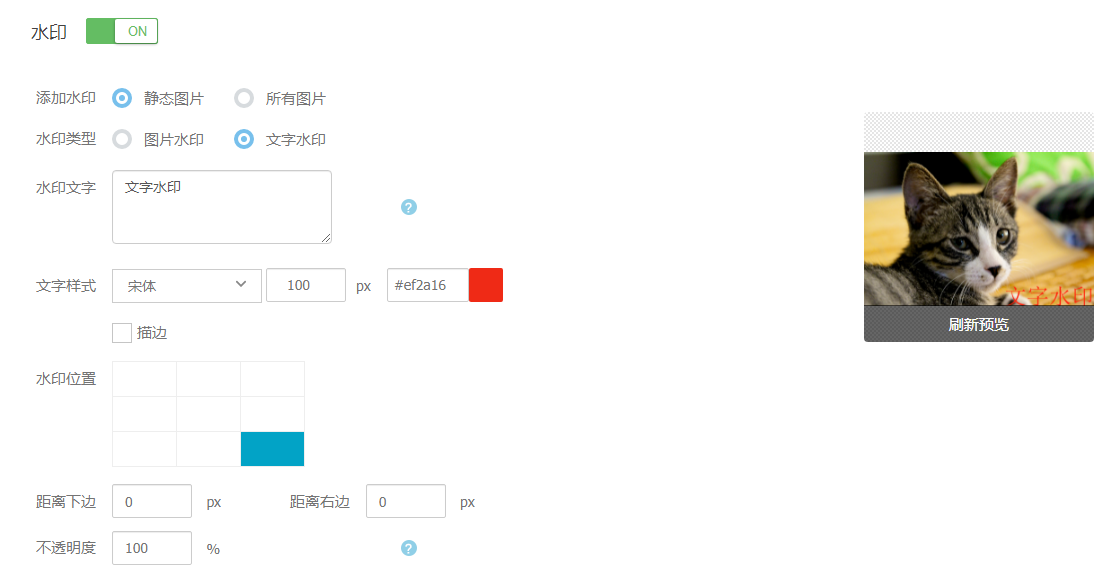 第二种,可以直接在又拍云控制台对应的云存储服务下,创建缩略图版本命名为【watermark】,并开启里面的水印功能。再通过 “url + 间隔符 + 版本号” 的形式,在访问图片的时候调用该缩略图版本,就可以在访问图片的时候看到设置的水印了。