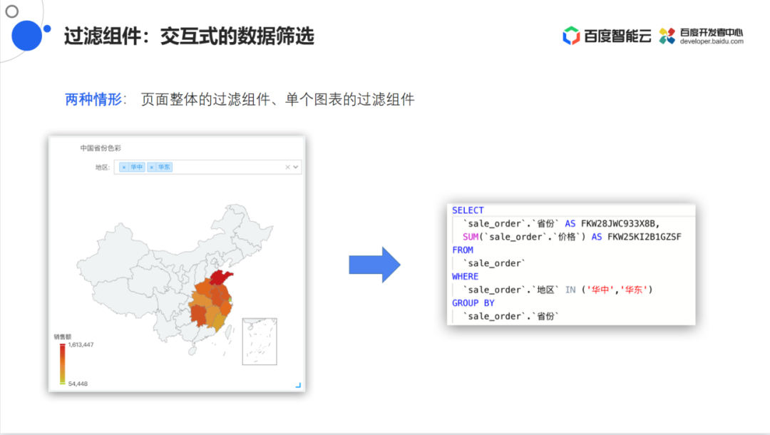 交互式的数据筛选其中分为页面整体的过滤组件和单个图表的过滤组件。
