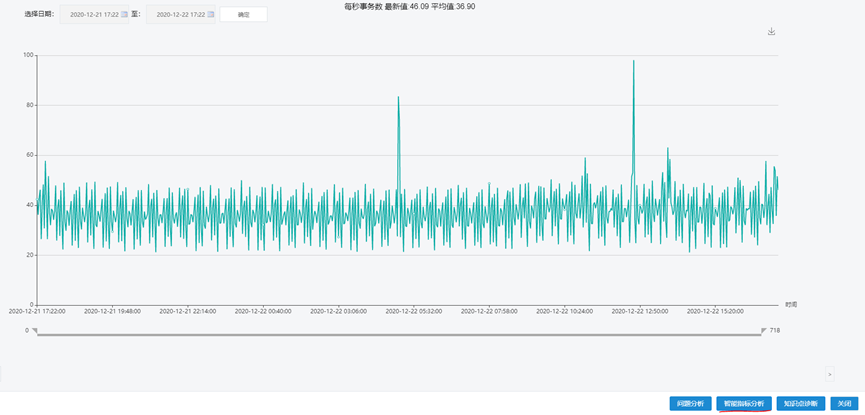 可以看到每秒事务数的波动基本上还是规律的,不过偶尔会出现一些波动。通过智能指标分析工具,我们可以看看AI专家能给我们推荐什么诊断工具。