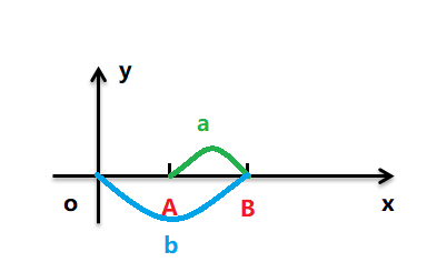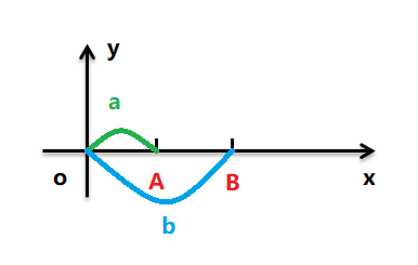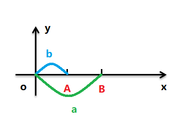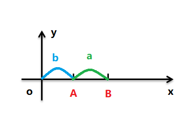 首先我们把 AB 之间的距离 b - a 赋值给 a,此时 AB = a, OB = b 。