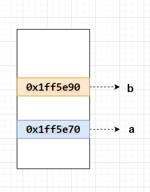 //其中 a 和 b 都是指针变量,里边存储着10和20的地址