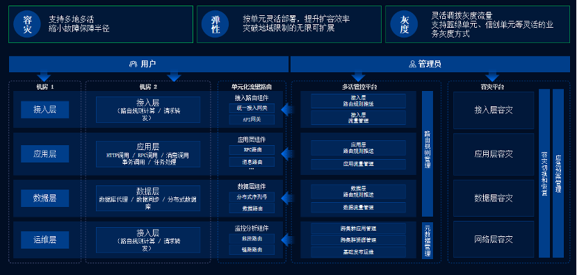 容灾方面,可以支撑企业的数据中心架构彻底从单活走向同城双活、两地三中心、再走向多地多活。一个业务单元发生故障不会影响到另外一个业务单元,从架构本身原生保障了业务的可靠性和连续性。
