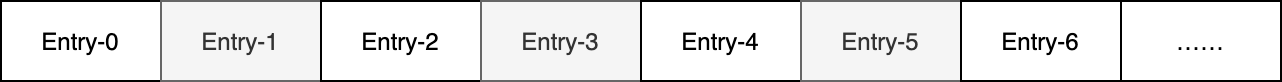 如果我们把空洞信息拆分为多个Entry来存储,首先面临的问题是索引。因为使用单个Entry记录时,只需要读取Ledger中最后一个Entry即可,而拆分为多个Entry后,我们不知道要读取多少个Entry。因此,新方案中引入了Marker,如下图所示: