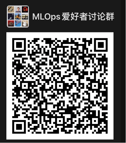 最后附上MLOps爱好者讨论群的二维码,欢迎各位对MLOps感兴趣的同学加入,我们一起来讨论相关的技术和项目。