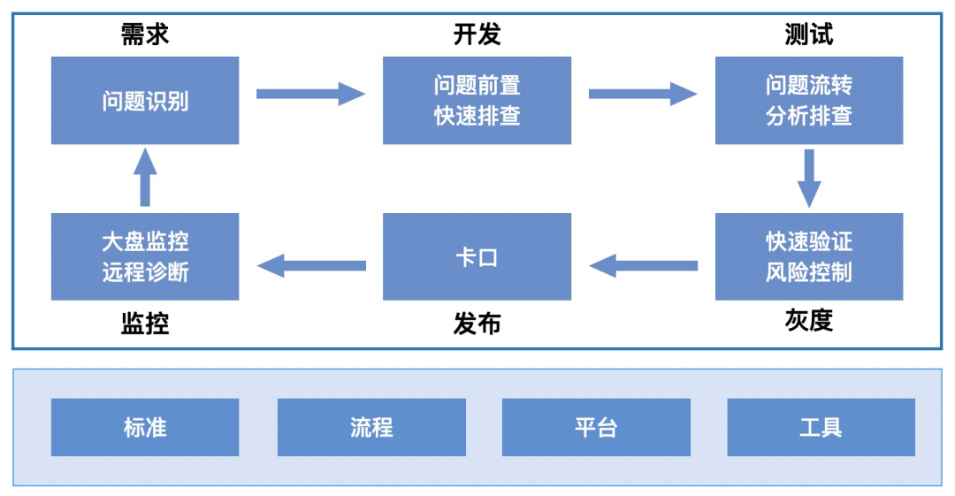 - 灰度和发布阶段关注线上数据大盘,建立报警机制,及时发现问题,通过用户日志排查线上问题。